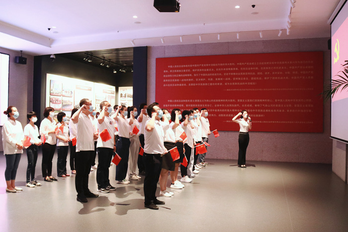 在展館內(nèi),氣氛嚴(yán)肅莊重,全體黨員整齊列隊(duì),高舉右拳,面向鮮紅的黨旗,以昂揚(yáng)的斗志和飽滿的熱情,鏗鏘有力地宣讀入黨誓詞,發(fā)出錚錚誓言。每一位黨員的心靈受到震撼和洗禮,更加堅(jiān)定了為共產(chǎn)主義事業(yè)而奮斗的理想信念。
